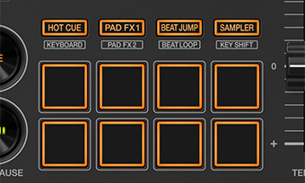 Hit the 8 back-lit rubber Performance Pads to trigger Hot Cues, Pad FX, Beat Jump, and the sampler.