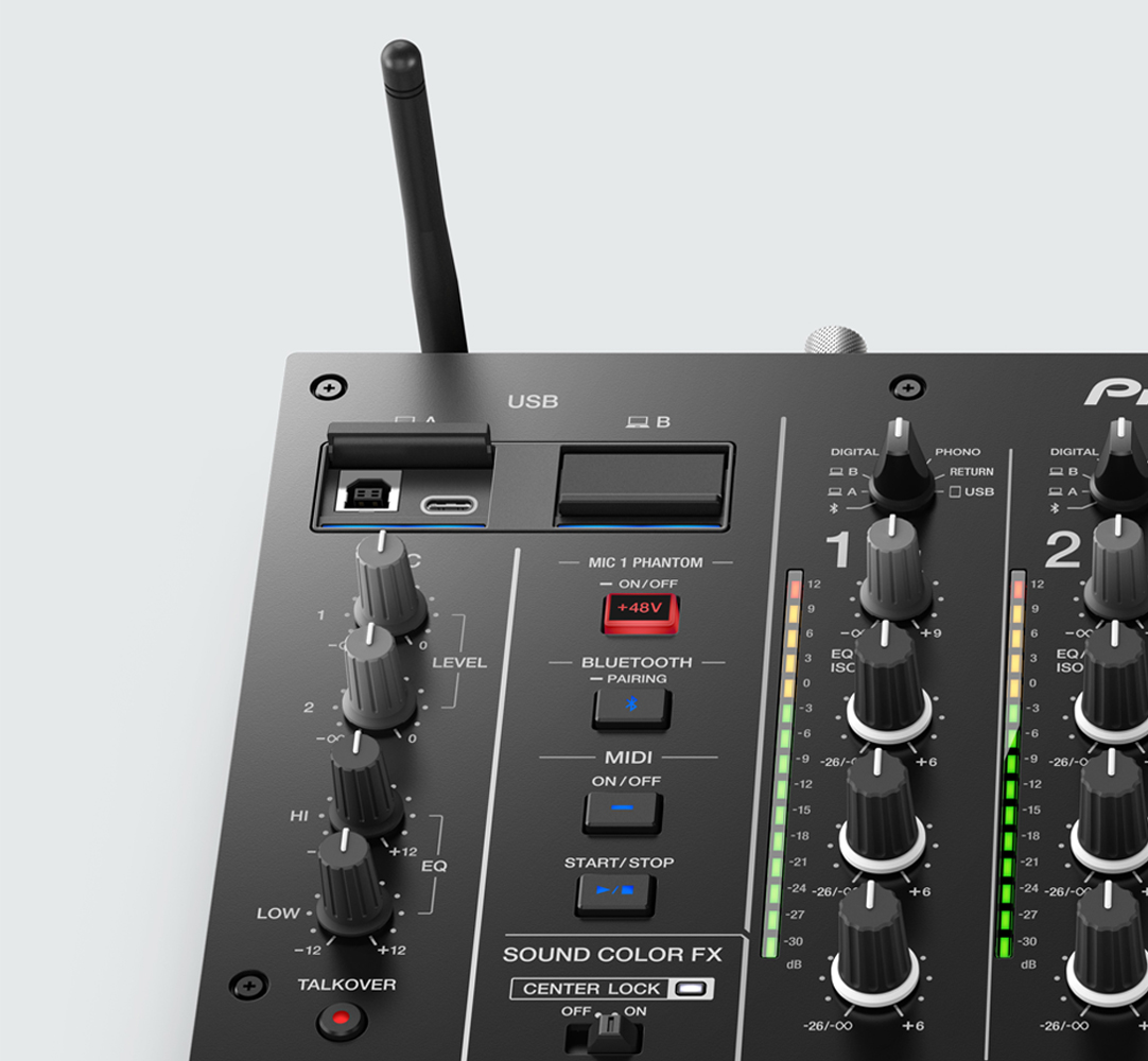 Increased spacing around the EQ knobs gives you the room to twist your fingers and high-grade, bright LEDs in the channel section make it easier than ever to get a visual grasp on sound levels. You can perform more dynamically than ever thanks to the frequency response of the isolators, which have been optimized to make the most of the latest music production traits. And, with higher quality, slicker channel faders than the DJM-900NXS2, plus the third-generation MAGVEL FADER crossfader, you can enjoy silk-smooth mixing and rapid, stable scratching.