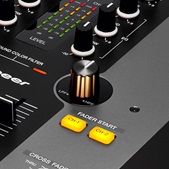The DJM-250 is the industry’s first 2-channel mixer equipped with a manual filter on each channel. Simply adjust the filter and EQ effects by turning the illuminated rotary knob.