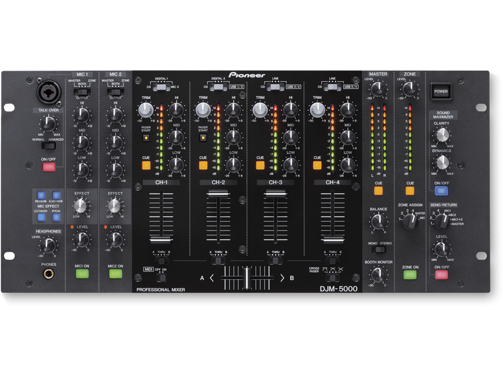 It also offers a dedicated Master/Zone output facility, enabling one DJ to manage two separate outputs across two different locations. Adding to its knockout credentials, the DJM-5000 includes a new Sound Maximizer function that boosts EQ dynamics to suit play in any environment and breathe new life into MP3’s.