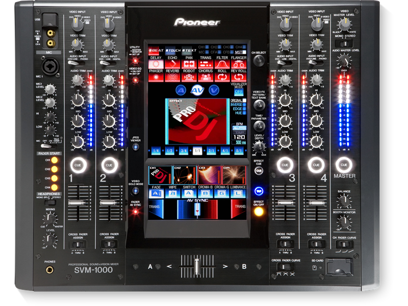 Complete with LCD touch panel, an impressive range of effects and 96 kHz/ 24-bit studio sound quality, the MIDI assignable SVM-1000 functions in a similar fashion to our acclaimed DJM series; which for DJs mean that the doors to full-on AV freedom are now fully open!