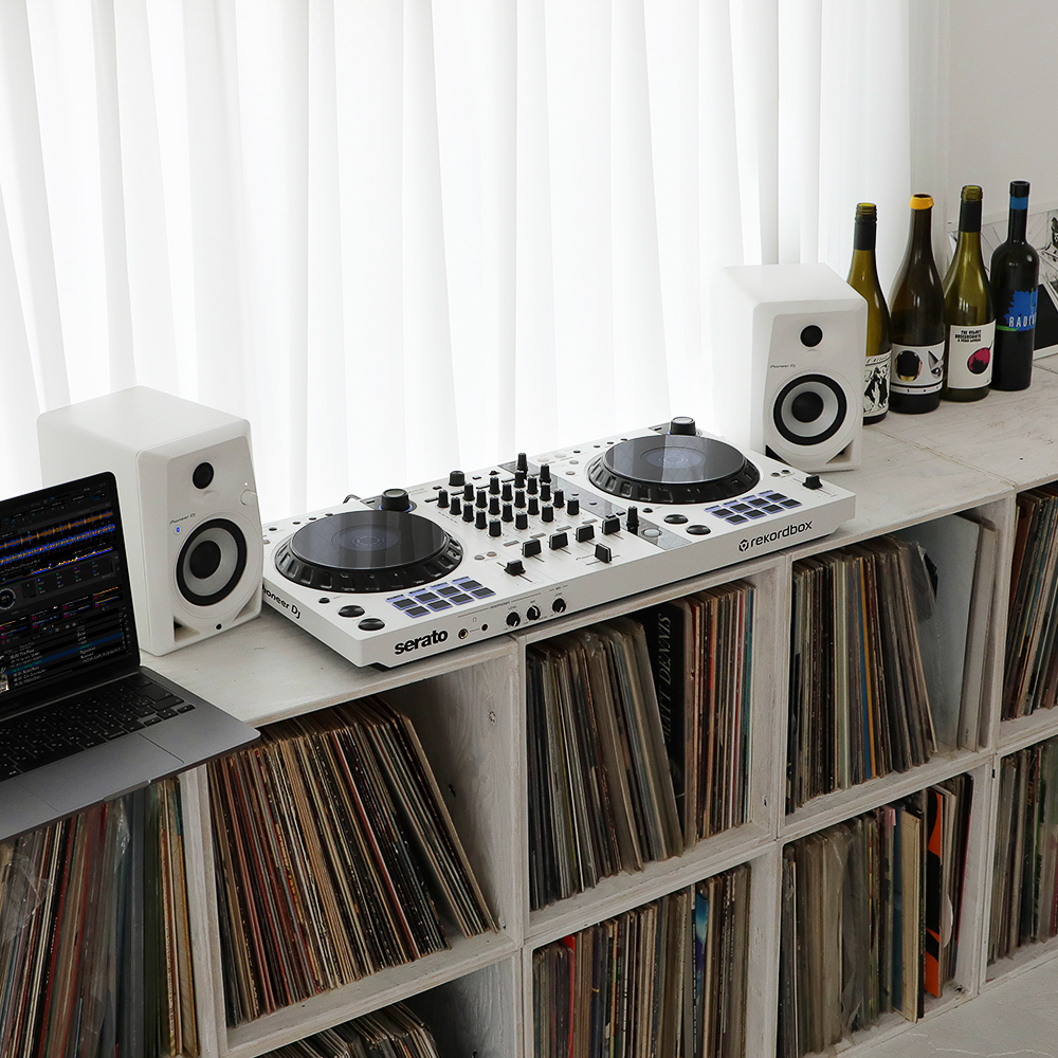 Bring a contemporary, fresh look to any event, livestream, or home setup you’re playing with this distinctive white controller. The DDJ-FLX6-W is sure to catch the eye of your audience with its unmistakable white body, which accentuates the black jog wheels, knobs, and faders.
