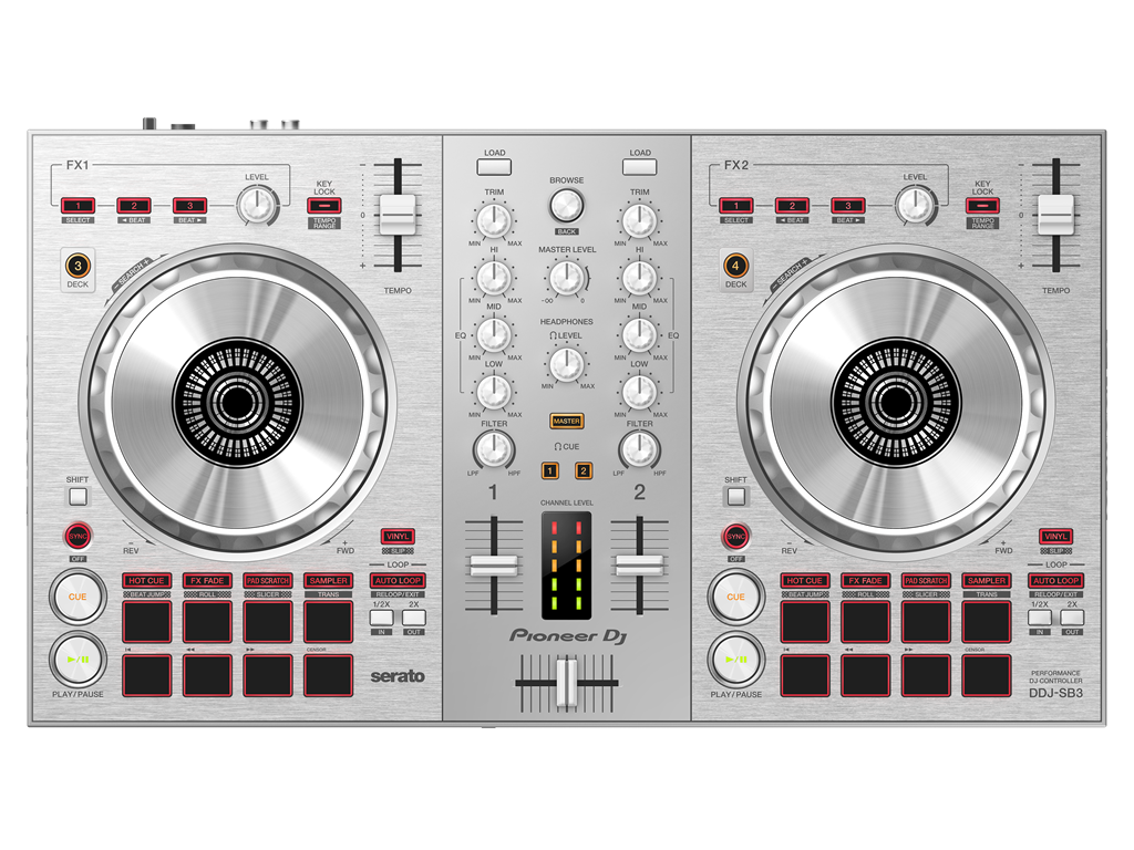 The DDJ-SB3 is constructed from premium materials and audio circuitry. Its robust build ensures durability, while the distinctive styling and aluminium jog wheel deliver a professional feel.
