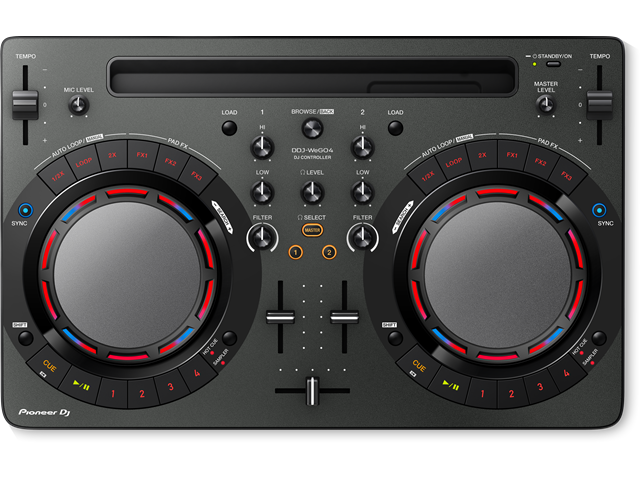 Take your first steps in the world of DJ-ing with the compact DDJ-WeGO4. Learn to mix seamlessly with tactile controls and jog wheels for scratching. And use the sampler, Hot Cues and Pad FX inherited from professional hardware to bring more creativity to your sets. Just plug in your laptop, tablet or smartphone and start to play.