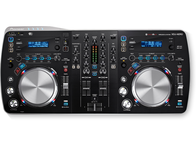 The XDJ-AERO is the original Wi-Fi enabled all-in-one system, allowing you – or your audience – to load music wirelessly from smartphones, tablets, laptops and PCs. A multipurpose unit, the XDJ-AERO works with rekordbox and the rekordbox app, functions as a standalone mixer when connected to players or turntables, and can be used as a MIDI/HID controller.