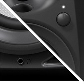 4-inch fiberglass woofers output a strong, punchy bass from the front, while grooves on the ducts reduce air friction. This way you'll feel a tight bass kick even when the monitors are positioned against the wall.
